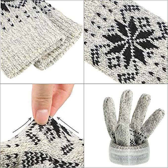 • What you will get: the package includes 3 pairs knit gloves, they are designed with snowflake pattern, comes with khaki, dark grey, dark blue color