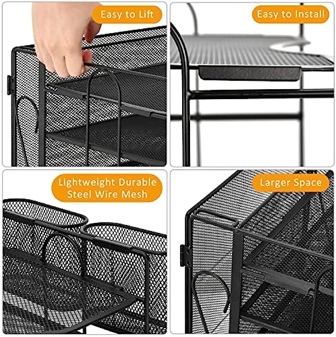 • 【Sturdy Durable】Paper organizer is made of lightweight durable steel wire mesh and reinforced and reinforced with a solid steel frame,very sturdy and will not fade or rust. Rubber anti-slip feet to prevent it from sliding or scratching surfaces. more stable and durable compared with many other similar products in the market.