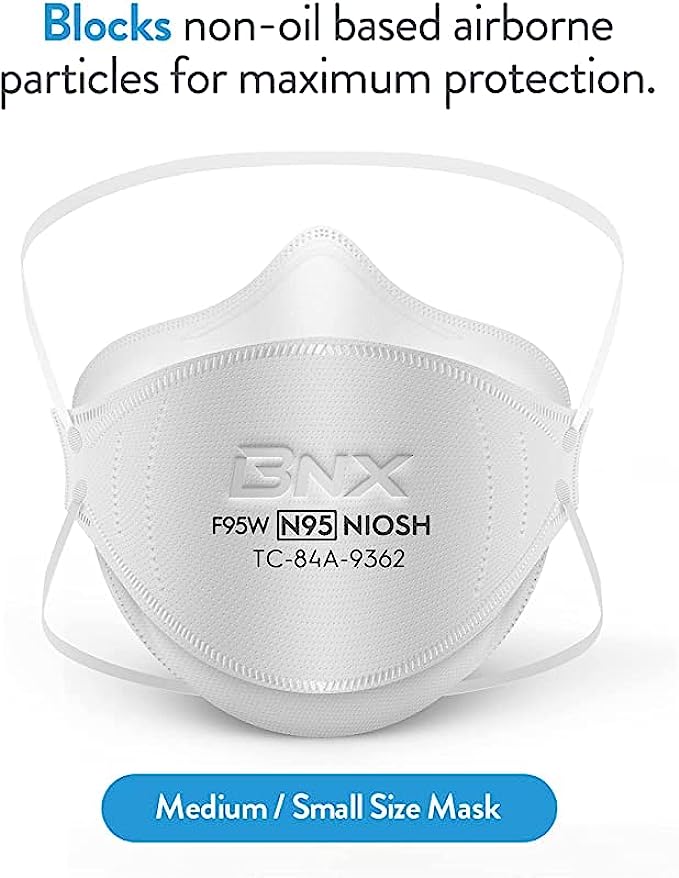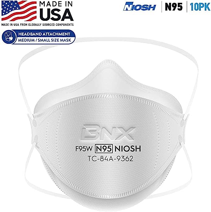 BNX N95 Mask NIOSH Certified MADE IN USA Particulate Respirator Protective Face Mask, Tri-Fold Cup/Fish Style, (10-Pack, Approval Number TC-84A-9362 / Model F95W) White