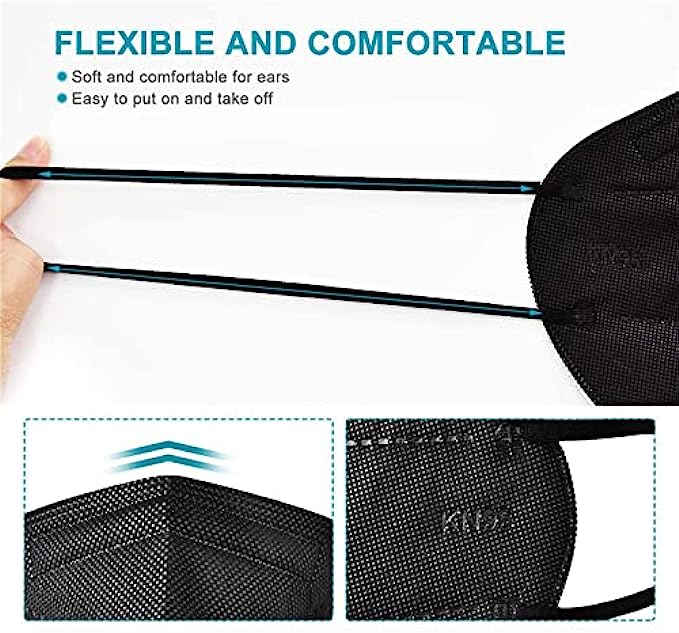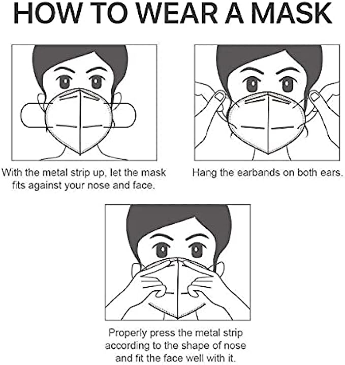 • ✔The 3D structure is designed according to the human face shape to ensure the tightness and safety. With soft elastic stretchable ear loop,which helps eliminate pressure on the ears for comfortable experience. Adjustable nose clip can help the mask perfectly attach onto your face.The four sides join tightly to the face; Hence, the protective mask KN95 avoids unfiltered air directly entering into.
