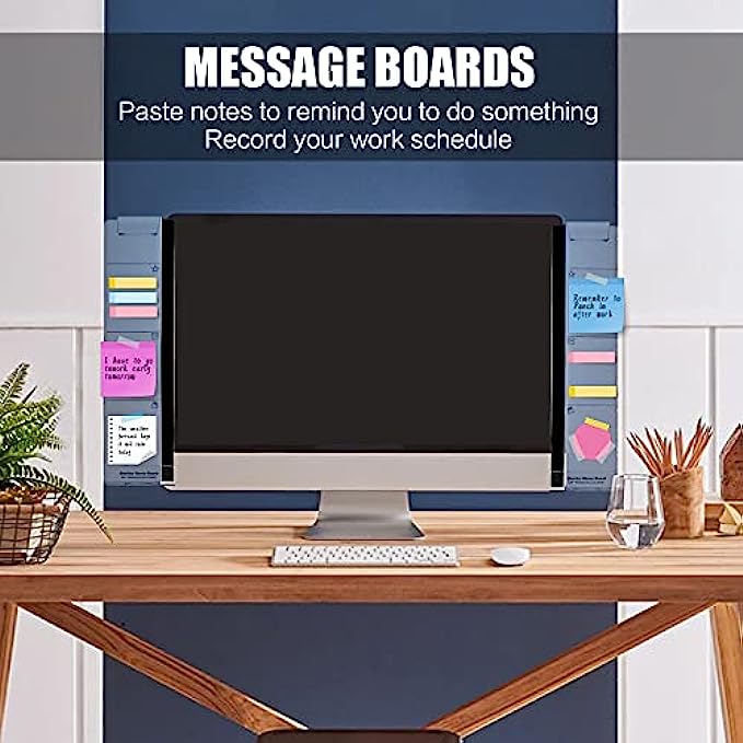 THE PACKAGE INCLUDES: Acrylic message board is a pair of suits, one on each side (left And Right) 1 Set. Meet your daily needs in office and home, and bring you a good experience. You can paste the note board on both sides with the computer screen, so that you will not forget what you want to do.
