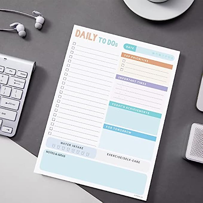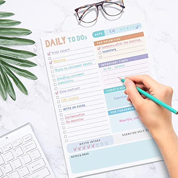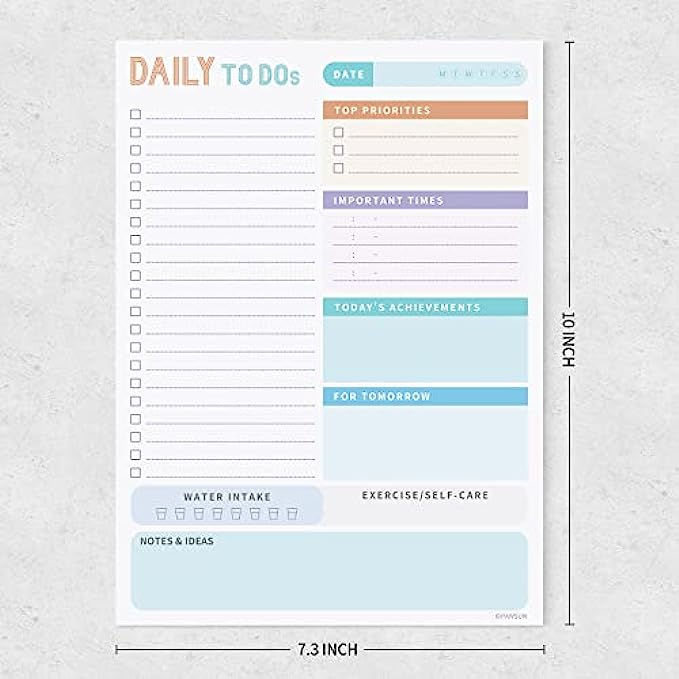 • Undated Daily Planner - 52 high quality tear off sheets, it will help you organize your day. Each sheet measures 7.3 x 10 inches.